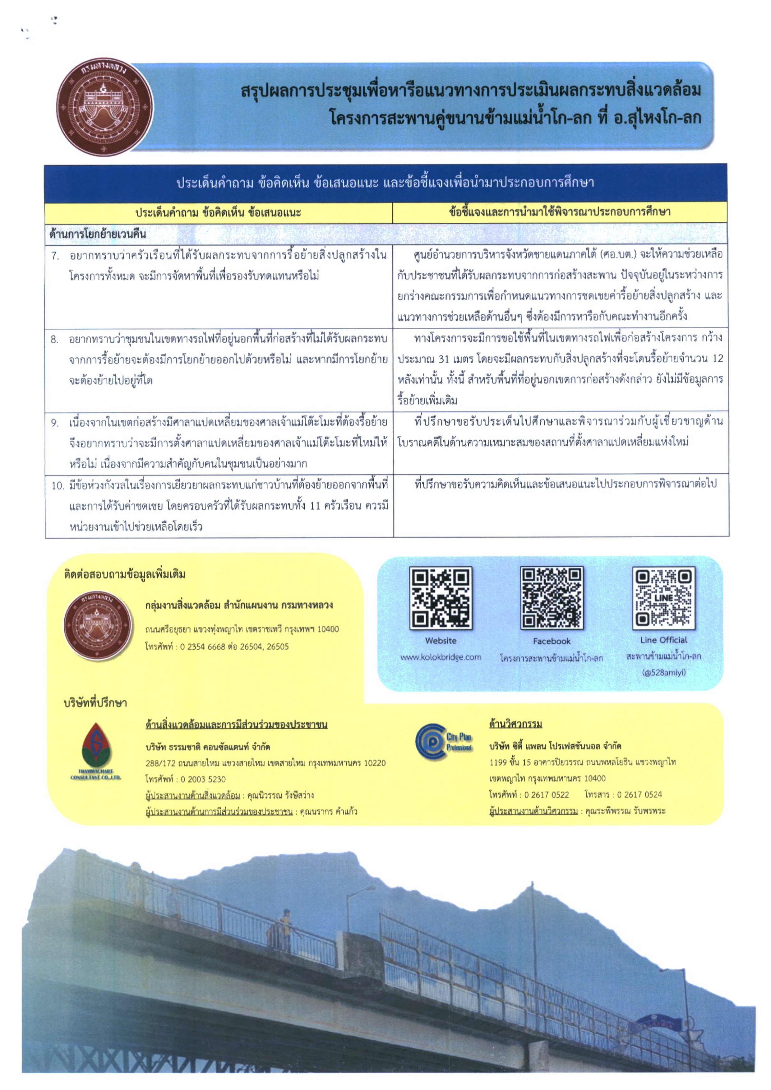 ร่วมประชุมหารือในขั้นตอนการเตรียมการก่อนการรับฟังความคิดเห็น และหารือกับหน่วยงานที่เกี่ยวข้อง โครงการสะพานคู่ขนานข้ามแม่น้ำโก-ลก แห่งที่ 2