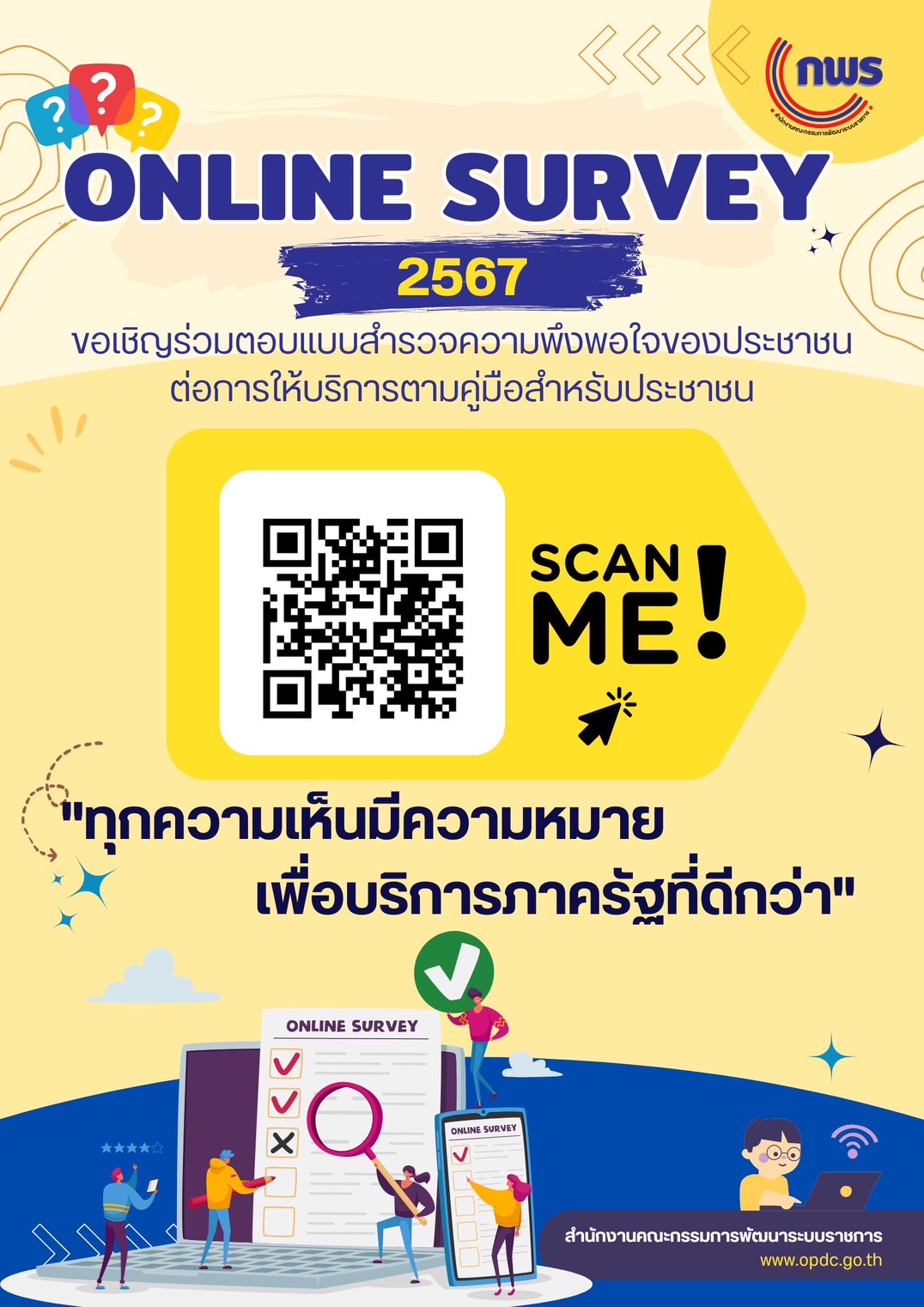 ขอเชิญทุกท่านร่วมตอบแบบสำรวจความพึงพอใจของประชาชนต่อการให้บริการของหน่วยงานของรัฐ ปี พ.ศ. 2567