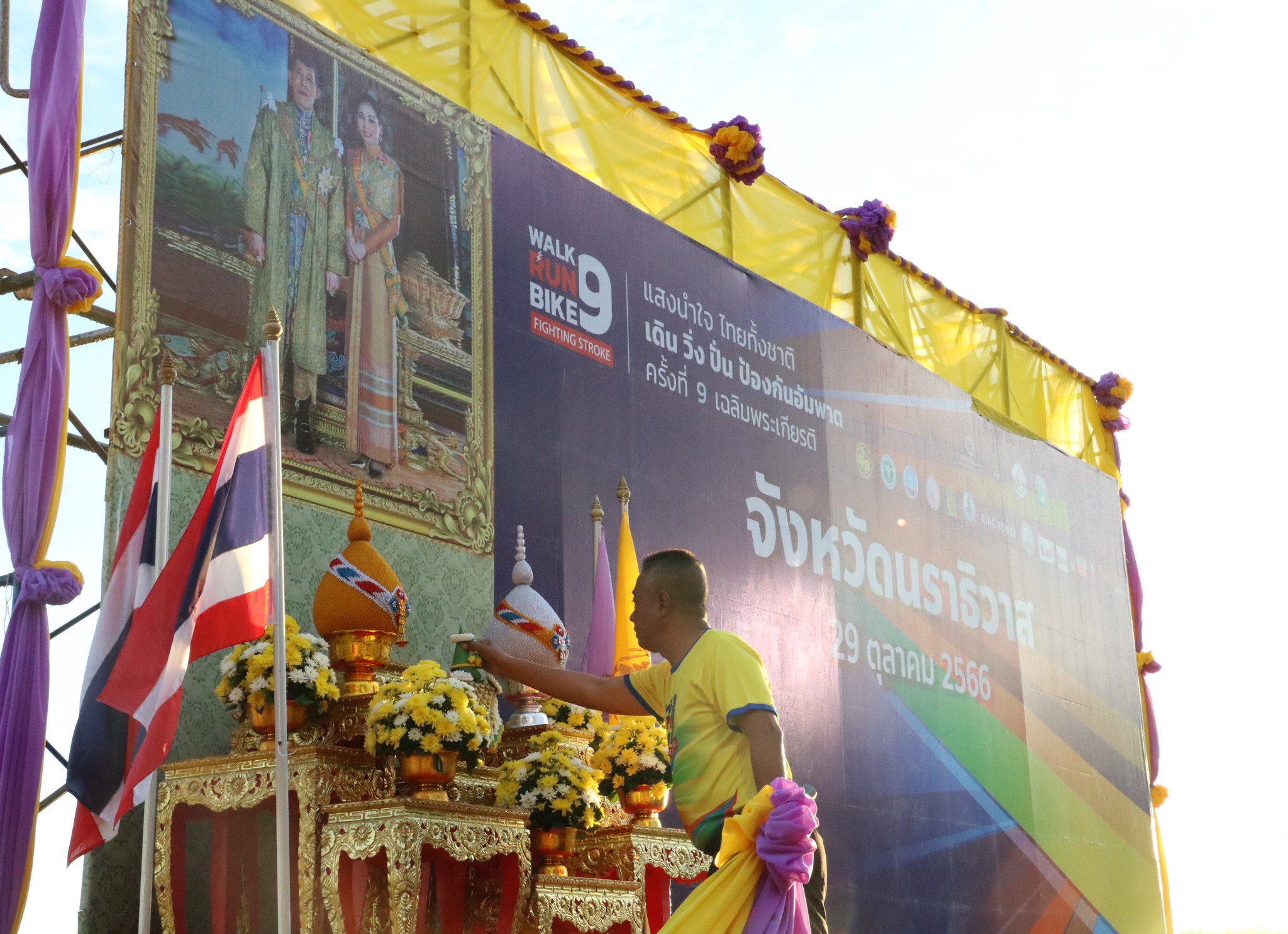 นายสมัคร เลือดวงหัด ผู้อำนวยการแขวงทางหลวงนราธิวาส พร้อมด้วยข้าราชการ และเจ้าหน้าที่แขวงทางหลวงนราธิวาส ร่วมกิจกรรมเดิน วิ่ง “โครงการแสงนำใจไทยทั้งชาติ เดิน วิ่ง ปั่น ป้องกันอัมพาต ครั้งที่ 9 เฉลิมพระเกียรติ” ณ บริเวณหาดนราทัศน์ อำเภอเมืองนราธิวาส ในการนี้มีนายปรีชา นวลน้อย รองผู้ว่าราชการจังหวัดนราธิวาส เป็นประธานเปิดกิจกรรมดังกล่าว ซึ่งมีผู้เข้าร่วมกิจกรรมกว่า 3,500 คน โดยจังหวัดนราธิวาสเป็นหนึ่งในจังหวัดที่จัดกิจกรรมขึ้นพร้อมกันทั่วประเทศ เพื่อเฉลิมพระเกียรติพระบาทสมเด็จพระเจ้าอยู่หัว และสมเด็จพระนางเจ้าฯ พระบรมราชินี ที่ทรงเป็นดั่งแสงนำใจ และทรงเป็นแบบอย่างแก่ประชาชนชาวไทยในการรักษาสุขภาพ และการออกกำลังกาย อีกทั้งเพื่อสร้างความตระหนักรู้ให้กับประชาชนในการป้องกันโรคหลอดเลือดสมอง