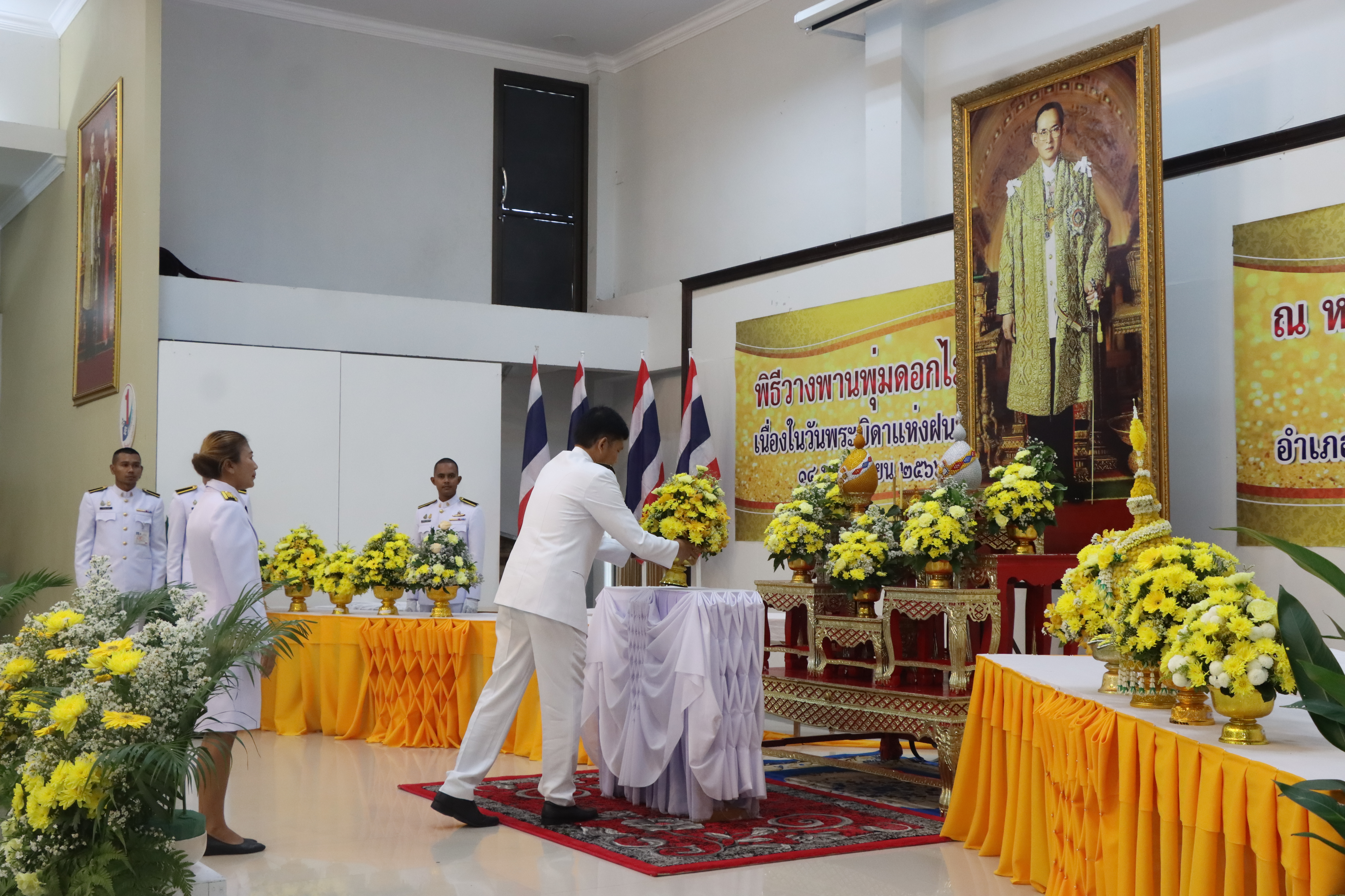 นายสมัคร เลือดวงหัด ผู้อำนวยการแขวงทางหลวงนราธิวาส มอบหมายให้นายจำลอง จันสุข รองผู้อำนวยการแขวงทางหลวงนราธิวาส (ฝ่ายปฏิบัติการ) พร้อมด้วย นางกานดา วรรณสิงห์ เจ้าพนักงานสถิติชำนาญงาน ร่วมกับหน่วยงานในสังกัดกระทรวงคมนาคม เข้าร่วมพิธีวางพานพุ่มดอกไม้ เนื่องในวันพระบิดาแห่งฝนหลวง ประจำปี 2566 เพื่อเป็นการน้อมรำลึกในพระมหากรุณาธิคุณของพระบาท สมเด็จพระบรมชนกาธิเบศร มหาภูมิพลอดุลยเดชมหาราช บรมนาถบพิตร “บิดาแห่งฝนหลวง” ณ หอประชุมจำลอง ศรีเลขา โรงเรียนนราธิวาส ตำบลโคกเคียน อำเภอเมืองนราธิวาส จังหวัดนราธิวาส ในการนี้มีนายปรีชา นวลน้อย รองผู้ว่าราชการจังหวัดนราธิวาส เป็นประธานในพิธี พร้อมด้วย ส่วนราชการที่เกี่ยวข้องเข้าร่วมกิจกรรมดังกล่าว