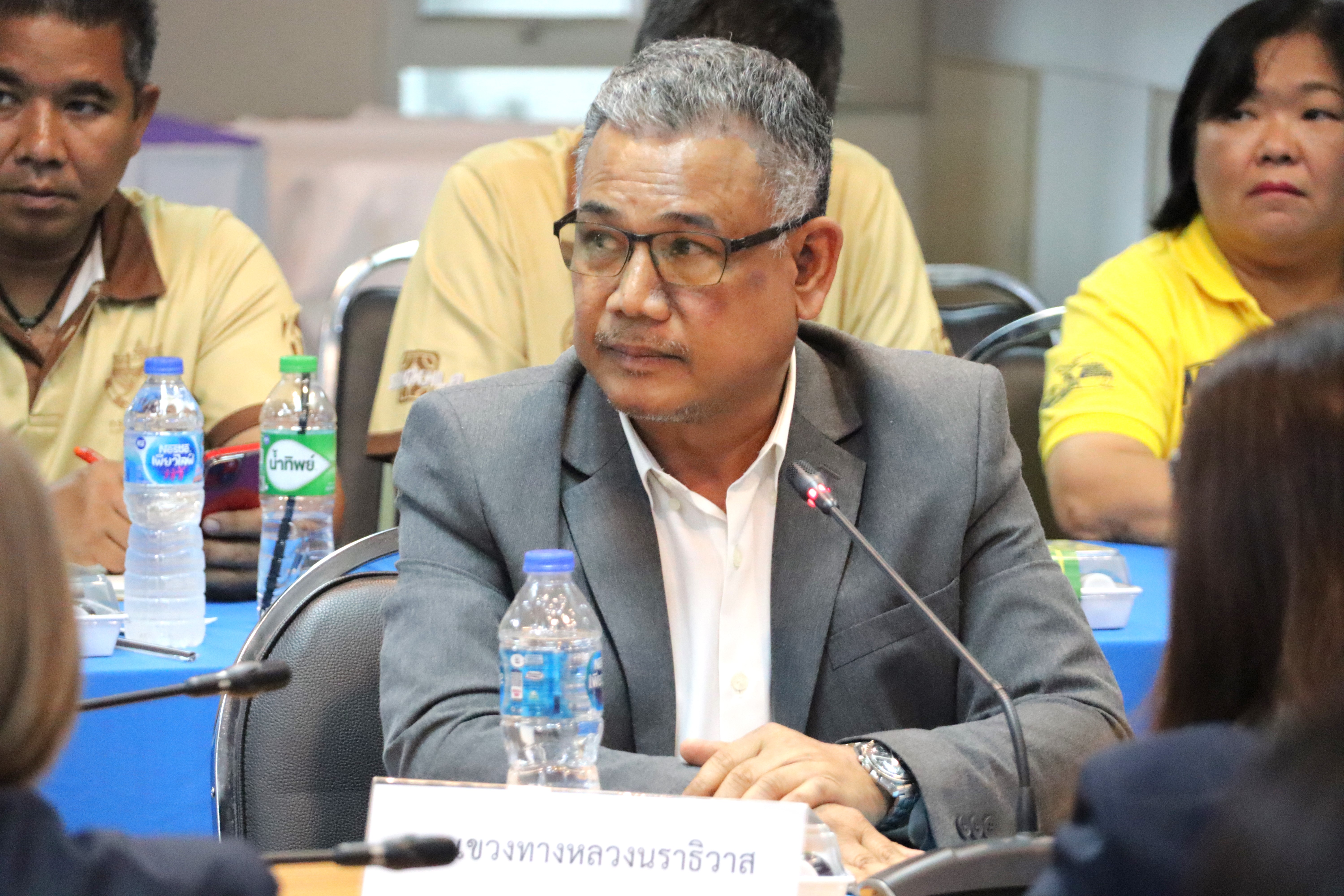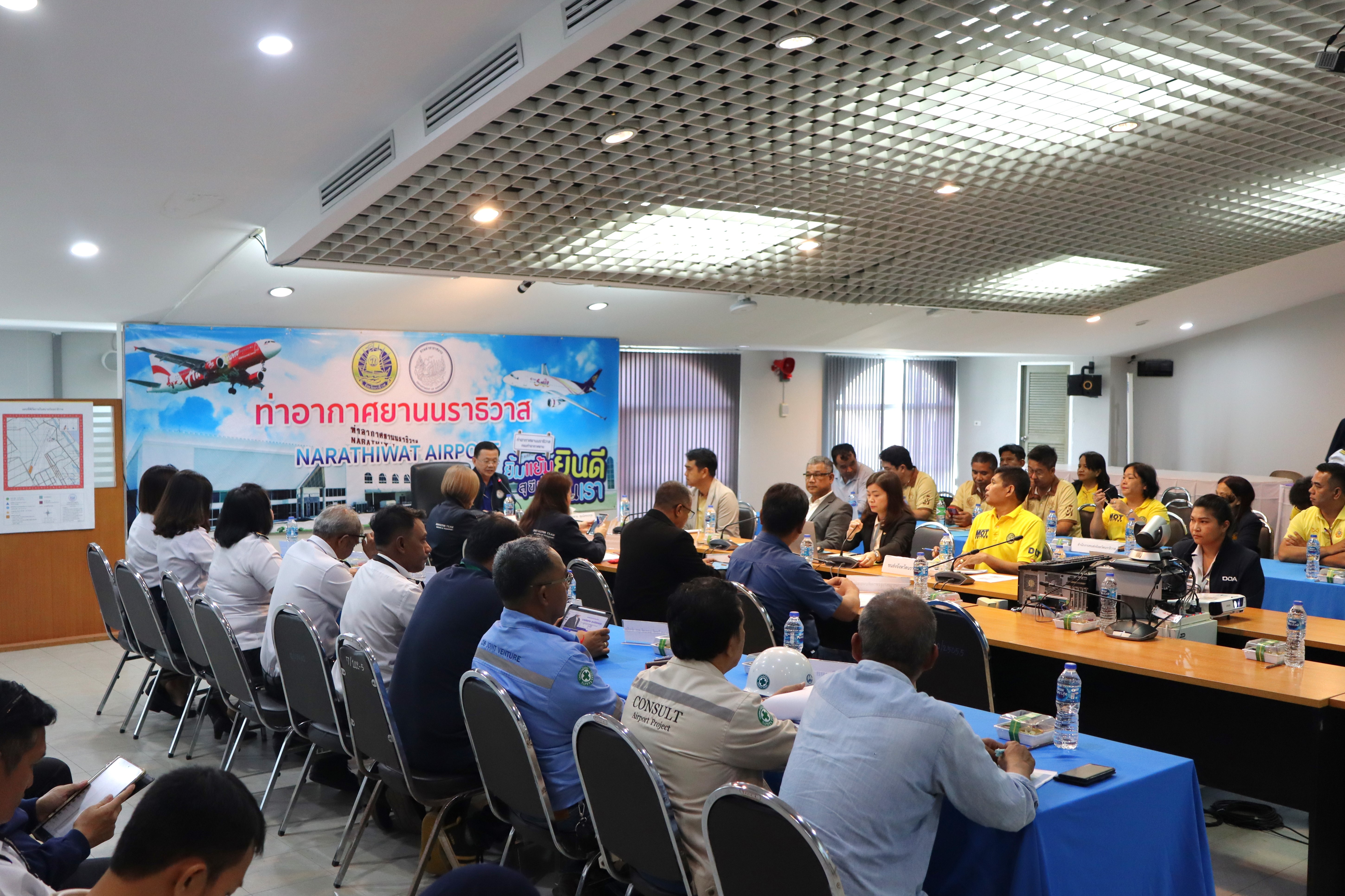 นายจอมปวีร์ จันทร์หิรัญ ผู้อำนวยการสำนักงานทางหลวงที่ 18 นายปฏิเวชวุฒิศักย์ สุขขี ผู้อำนวยการแขวงทางหลวงนราธิวาส พร้อมด้วยผู้อำนวยการส่วนแผนงาน ผู้อำนวยการแขวงทางหลวงในสังกัด นายธวัชชัย เผนานนท์ รองผู้อำนวยการแขวงทางหลวงนราธิวาส (ฝ่ายวิศวกรรม) นางอรัญญา เพ็ชรพูล รองผู้อำนวยการแขวงทางหลวงนราธิวาส (ฝ่ายบริหาร) ร่วมต้อนรับนายสมชาย สุมนัสขจรกุล ผู้ตรวจราชการกระทรวงคมนาคม และคณะฯ เดินทางมาตรวจราชการในพื้นที่เขตตรวจราชการที่ 7 (พื้นที่จังหวัดนราธิวาส) เพื่อตรวจติดตามความก้าวหน้าผลการดำเนินงานของหน่วยงานในสังกัดกระทรวงคมนาคมพื้นที่เขตตรวจราชการที่ 7 (พื้นที่จังหวัดนราธิวาส) ณ ห้องประชุมท่าอากาศยานนราธิวาส ต.โคกเคียน อ.เมืองนราธิวาส จ.นราธิวาส