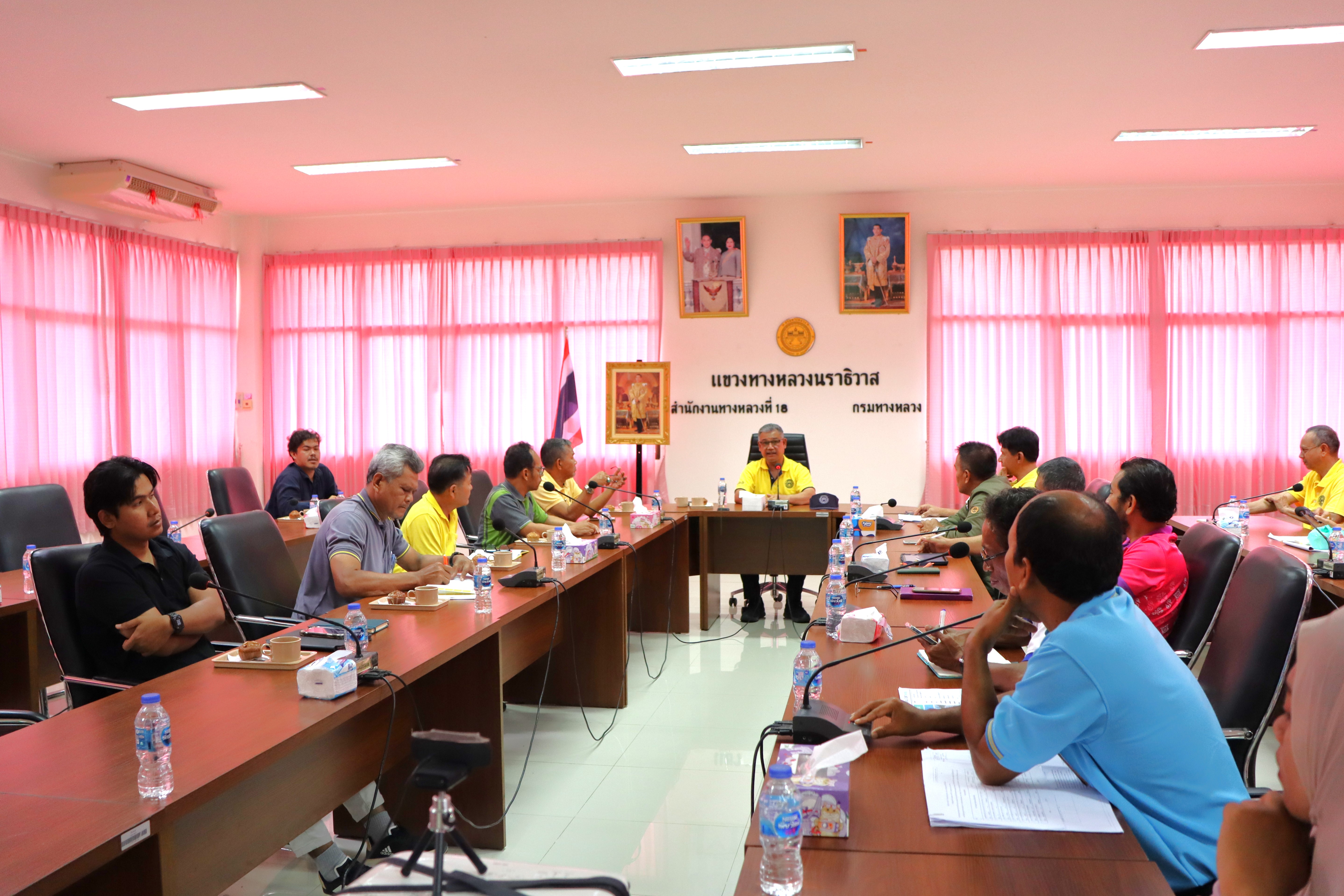 นายปฏิเวชวุฒิศักย์ สุขขี ผู้อำนวยการแขวงทางหลวงนราธิวาส พร้อมด้วยรองผู้อำนวยการแขวงทางหลวงนราธิวาส ฝ่ายปฏิบัติการ ฝ่ายวิศวกรรม ฝ่ายบริหาร หัวหน้าหมวดทางหลวงระแงะ ผู้ควบคุมงาน ข้าราชการและเจ้าหน้าที่ ร่วมกับองค์การบริหารส่วนตำบลจะแนะ การไฟฟ้าส่วนภูมิภาค สาขารือเสาะ บริษัท แอดวานซ์ไวร์เลส เน็ตเวอร์ค จำกัด และบริษัท โทรคมนาคมแห่งชาติ จำกัด (มหาชน) ร่วมประชุมหารือการรื้อย้ายสาธารณูปโภคในเขตทางหลวง ณ ห้องประชุมชั้น 3 แขวงทางหลวงนราธิวาส