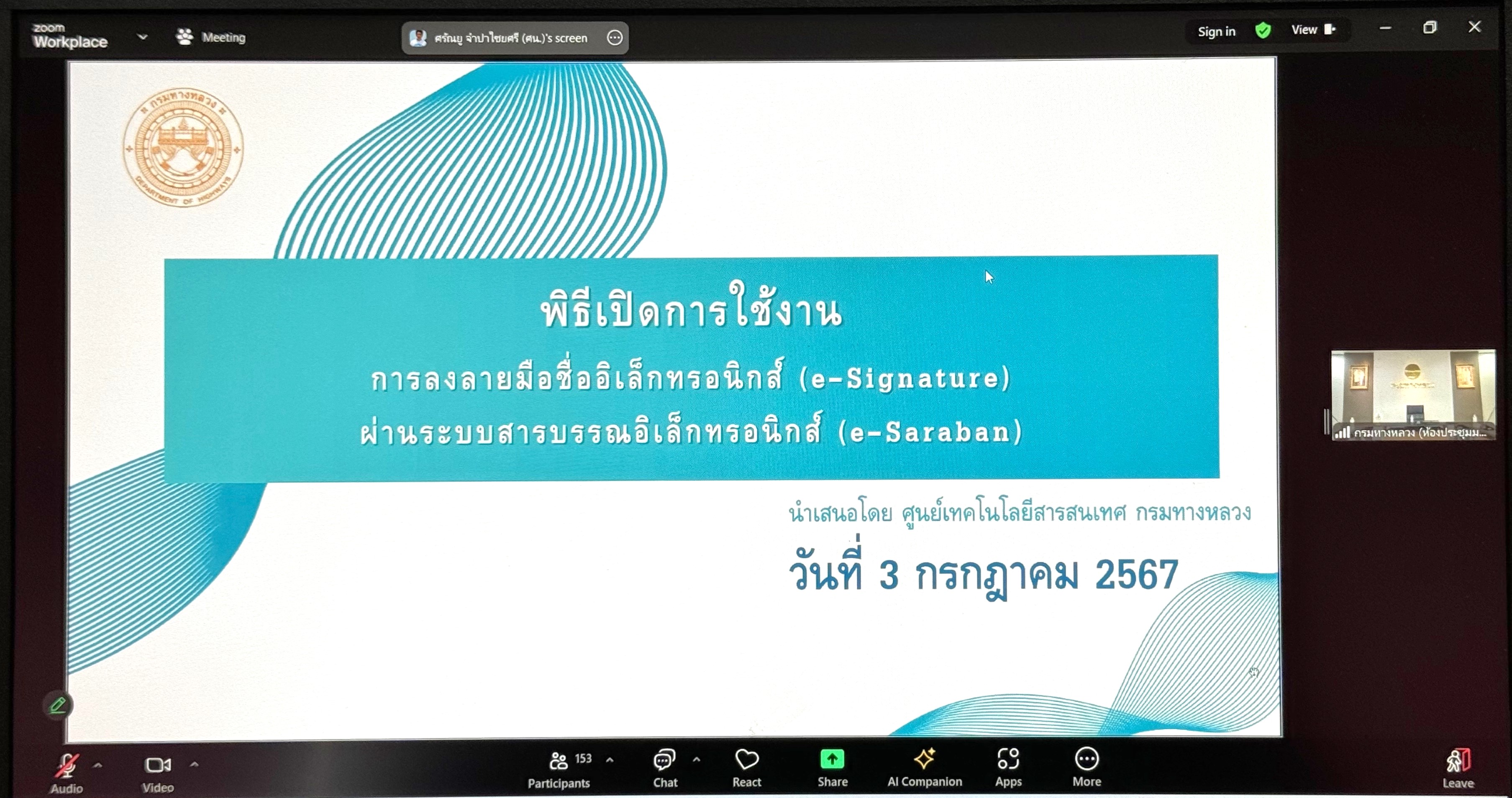 ร่วมประชุมเปิดการใช้งานการลงลายมือชื่ออิเล็กทรอนิกส์ (e-Signature) ผ่านระบบสารบรรณอิเล็กทรอนิกส์สำหรับหน่วยงานภาครัฐ (e-Saraban)