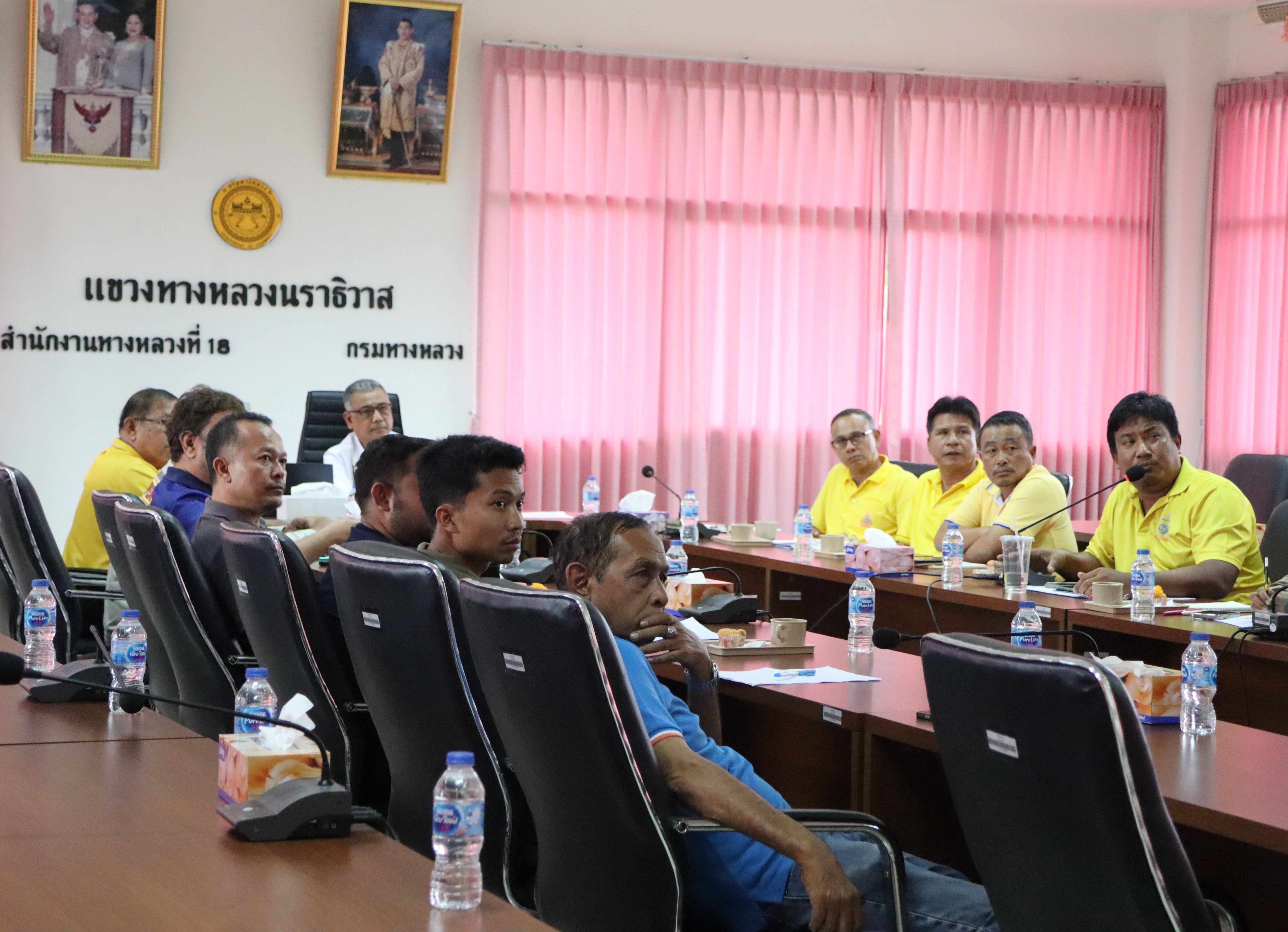 นายปฏิเวชวุฒิศักย์ สุขขี ผู้อำนวยการแขวงทางหลวงนราธิวาส พร้อมด้วยรองผู้อำนวยการแขวงทางหลวงนราธิวาส ฝ่ายปฏิบัติการ ฝ่ายวิศวกรรม ฝ่ายบริหาร และผู้ควบคุมงาน ร่วมกับผู้จัดการการไฟฟ้าส่วนภูมิภาคสาขาอำเภอตากใบ และผู้รับจ้าง ร่วมประชุมติดตามความคืบหน้า ปัญหา อุปสรรค การดำเนินงานสัญญาที่ นธ.1/2567 งานพัฒนาสะพานและระบบระบายน้ำ ทล.43270100 ตอน สามแยกตากใบ - ตาบา ระหว่าง กม.0+000- กม.1+000 , นธ.3/2567 งานก่อสร้างเพิ่มมาตรฐานทางหลวงระดับภาค ทล.40580102 ตอน มะรือโบ - รือเสาะ ระหว่าง กม.25+000 - กม.29+400 และ นธ.4/2567 งานก่อสร้างเพิ่มมาตรฐานทางหลวง ทล.41550100 ตอน บาเจาะ - บ้านทอน ระหว่าง กม.0+012 - กม.2+025 ณ ห้องประชุมชั้น 3 แขวงทางหลวงนราธิวาส