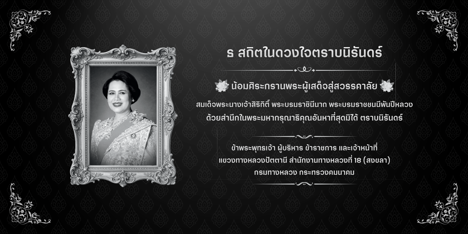 ธ สถิตในดวงใจตราบนิรันดร์ น้อมศิระกรานพระผู้เสด็จสวรรคาลัย สมเด็จพระนางเจ้าสิริกิติ์ พระบรมราชินีนาถ พระบรมราชนนีพันปีหลวง