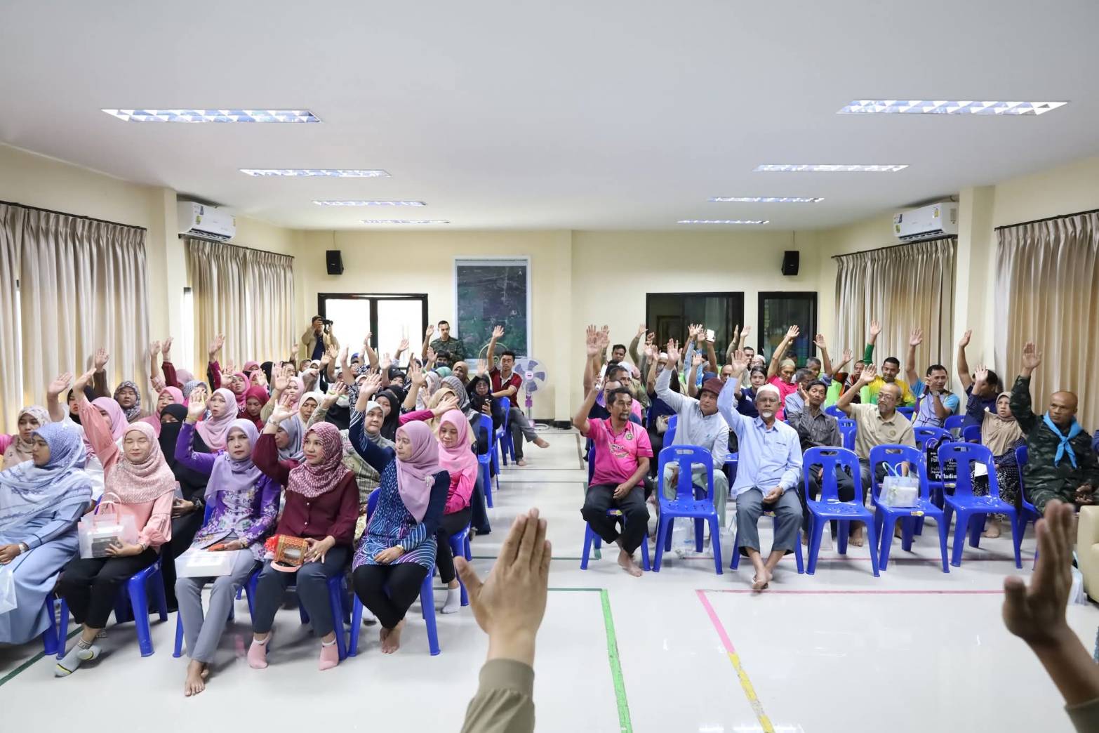 ?? ในการนี้ นายสุวิชัย นวลฉวี รองผู้อำนวยการฯ ฝ่ายปฏิบัติการ, นายมูฮัมมัดอับดุฮ์ ลาเต๊ะ วิศวกรโยธาปฏิบัติการ, นายสมชาติ คงศรี นายช่างโยธาชำนาญงาน, นายวิทยา หนิเจริญ นายช่างโยธาชำนาญงาน และนายพิเชษฐ ทองช่วย โครงการจัดกรรมสิทธิ์ที่ดิน ที่ 3 ร่วมเป็นวิทยากร บรรยายรูปแบบและรายละเอียดการก่อสร้างโครงการฯ, รับฟังความคิดเห็นและข้อเสนอแนะ และร่วมชี้แจงข้อซักถามด้วย โดยมี นายมะยูโซะ กูเตะ นายอำเภอยะรัง เป็นประธานในพิธีเปิด ณ ห้องประชุมองค์การบริหารส่วนตำบลปิตูมุดี ตำบลปิตูมุดี อำเภอยะรัง จังหวัดปัตตานี