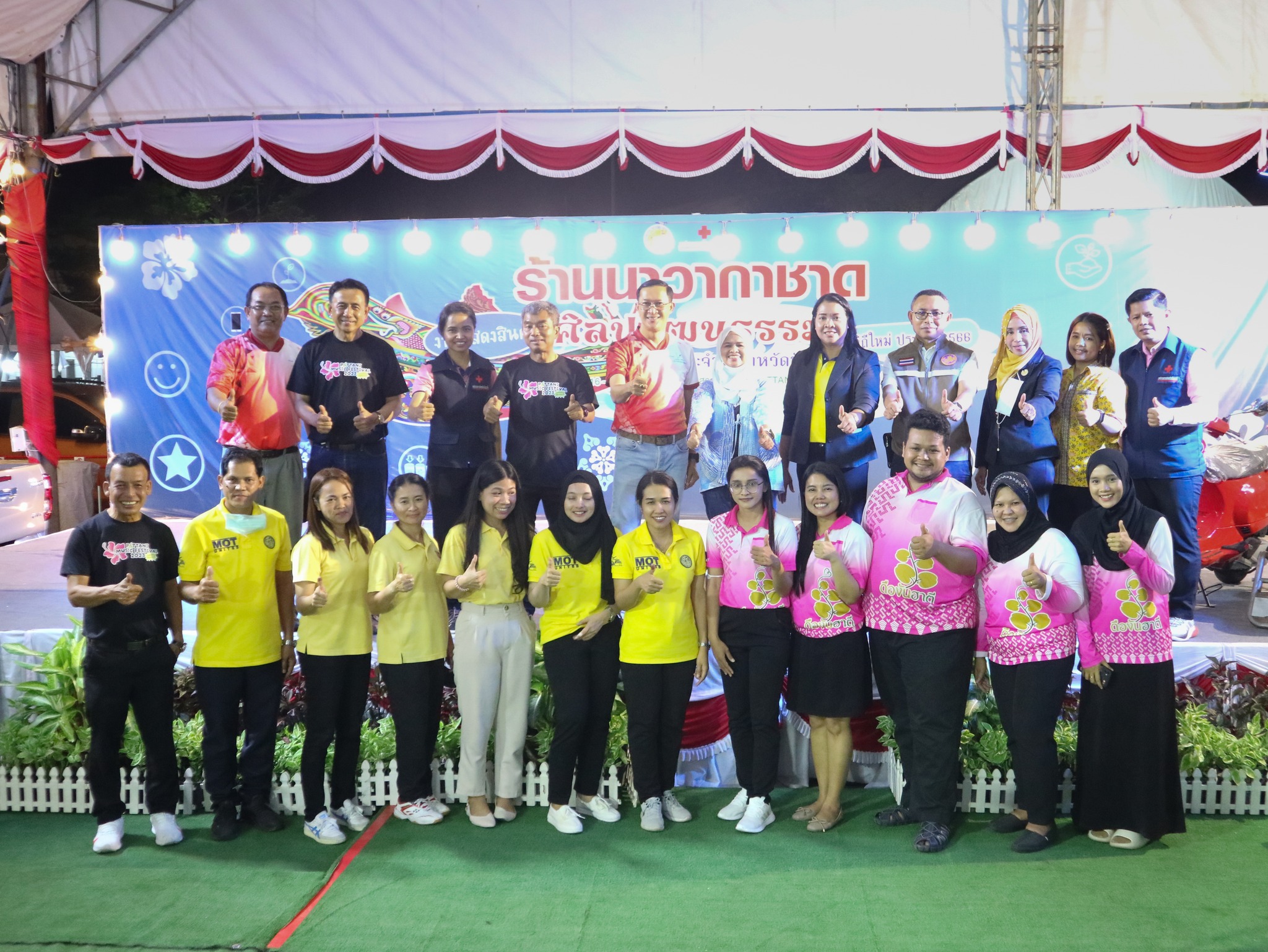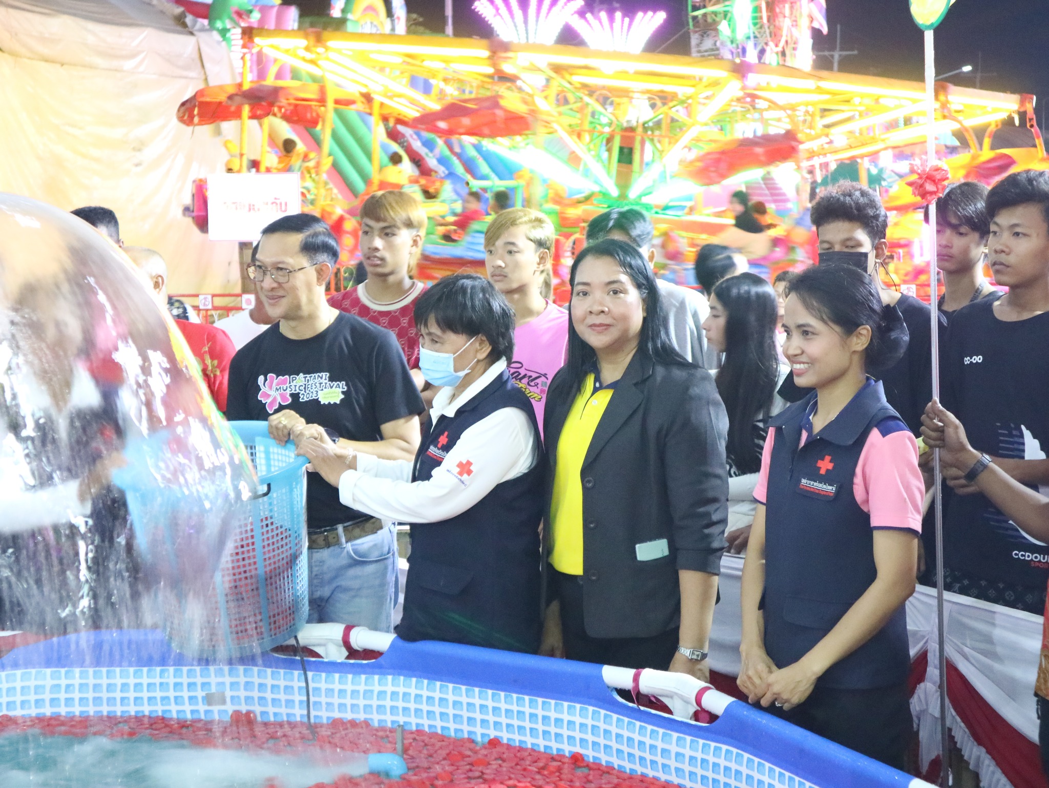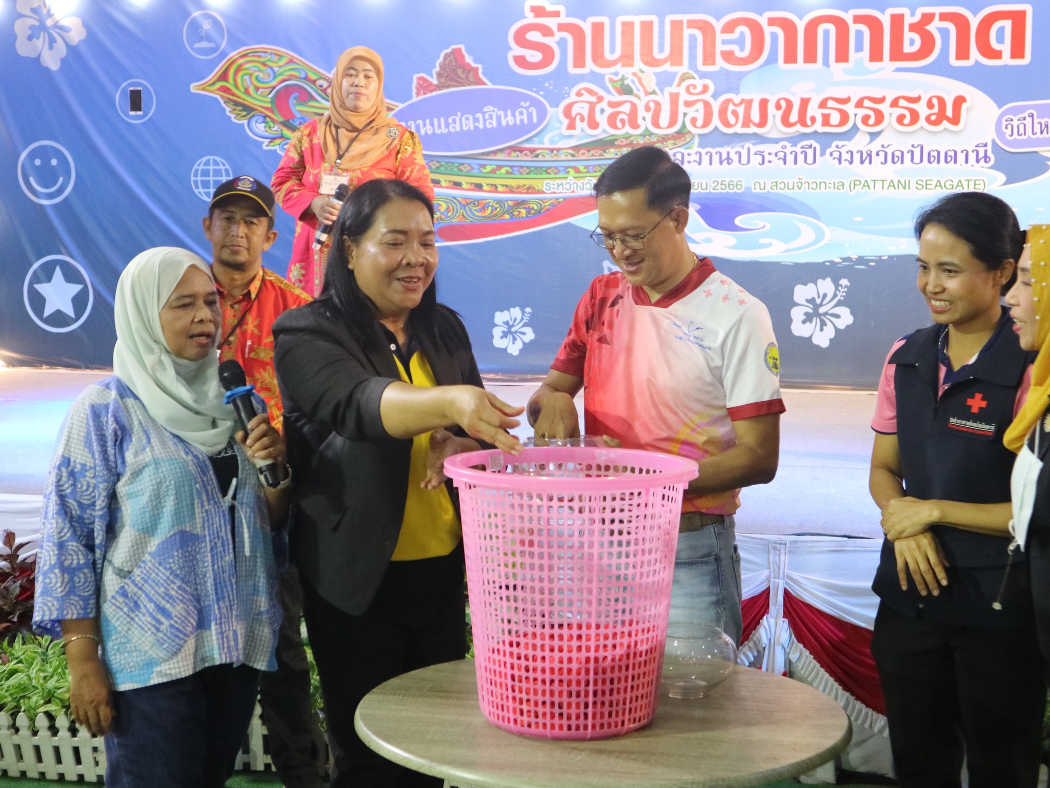 และนางธันย์ภัคนันท์ อุสมันบาฮา ร่วมปฏิบัติงานและมอบรางวัลภายในร้านนาวากาชาด จังหวัดปัตตานี