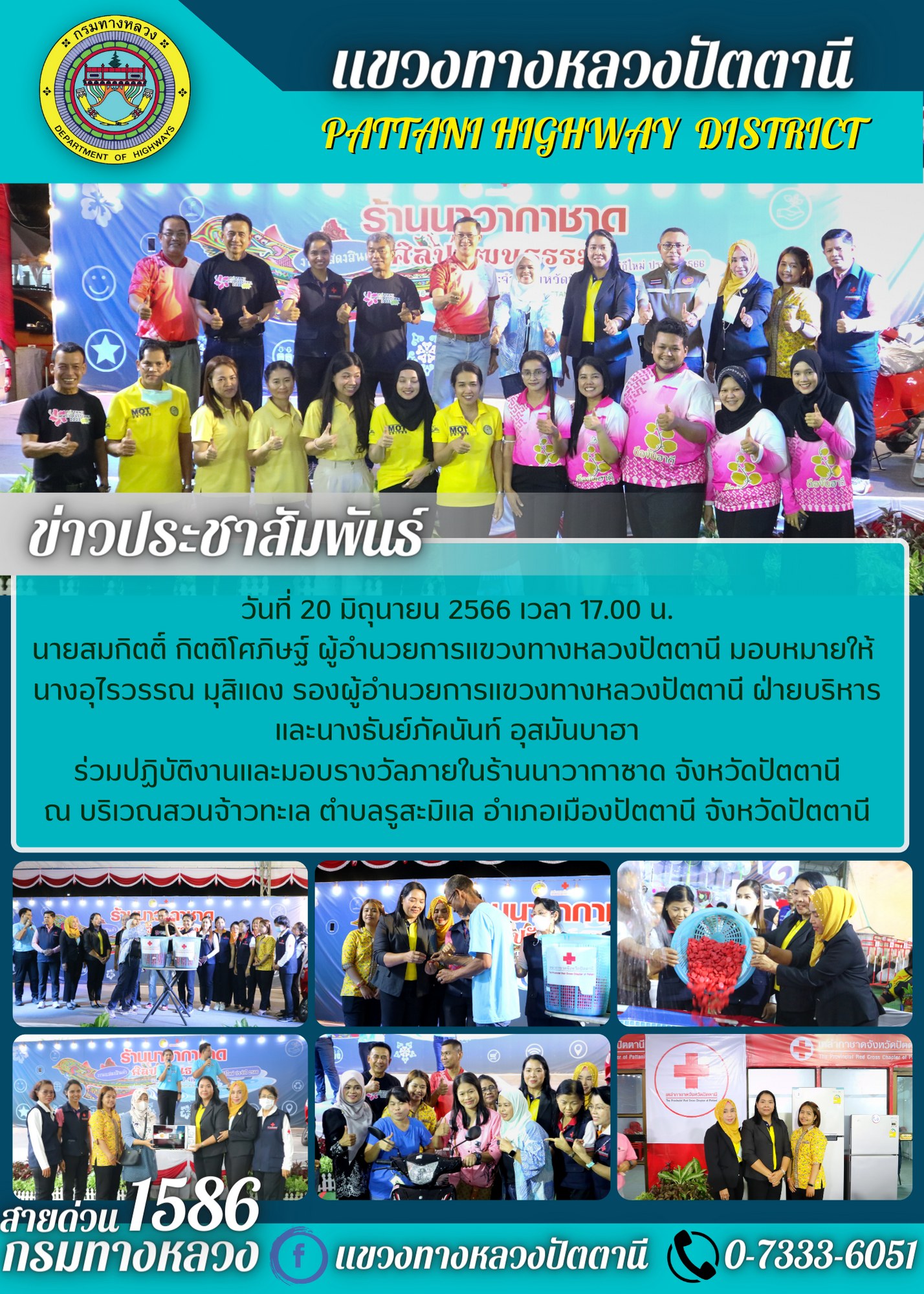 นายสมกิตติ์ กิตติโศภิษฐ์ ผู้อำนวยการแขวงทางหลวงปัตตานี มอบหมายให้