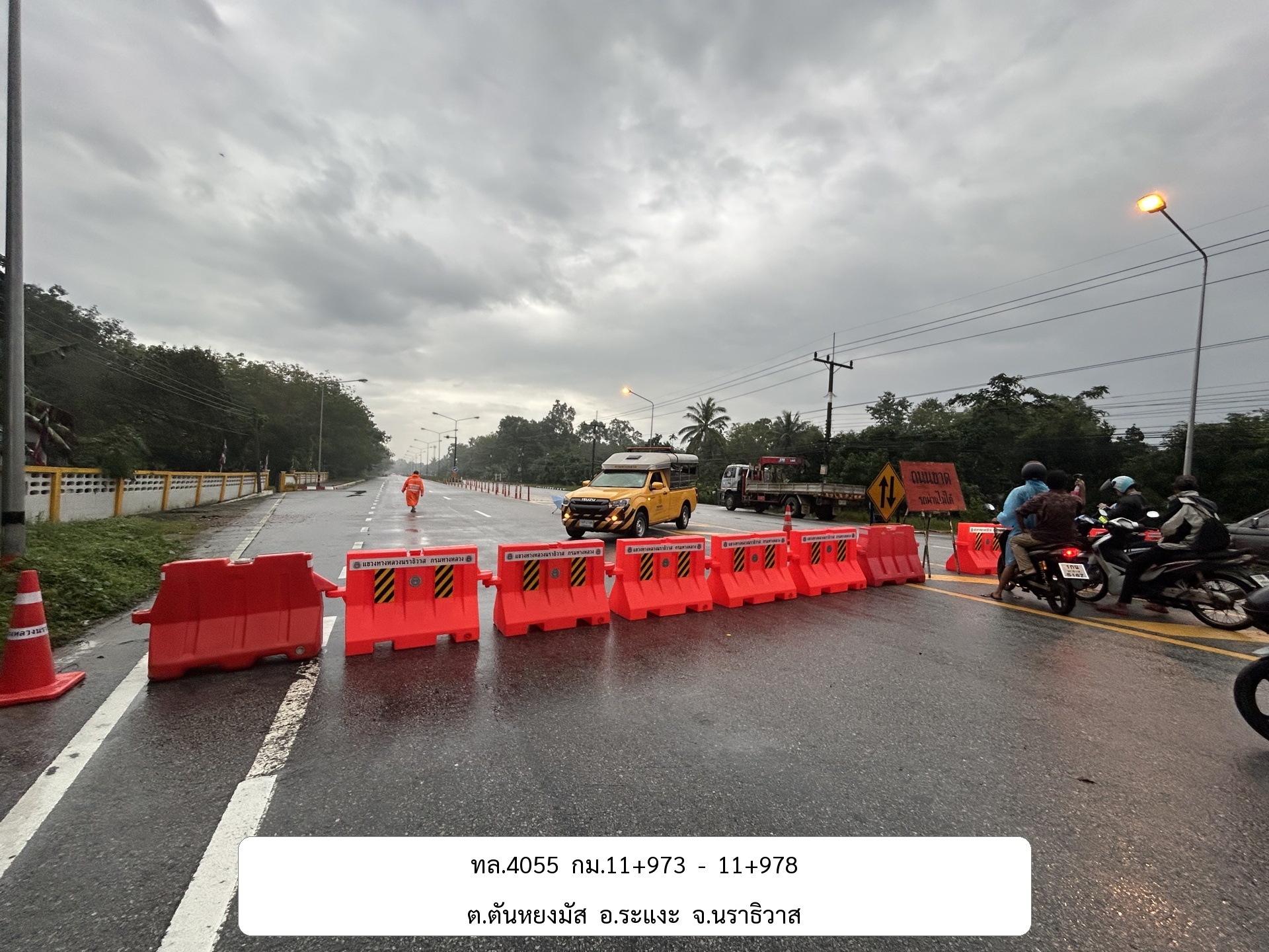 แขวงทางหลวงนราธิวาส ขอปิดทางหลวงหมายเลข 4055 เนื่องจากคอสะพานชำรุด