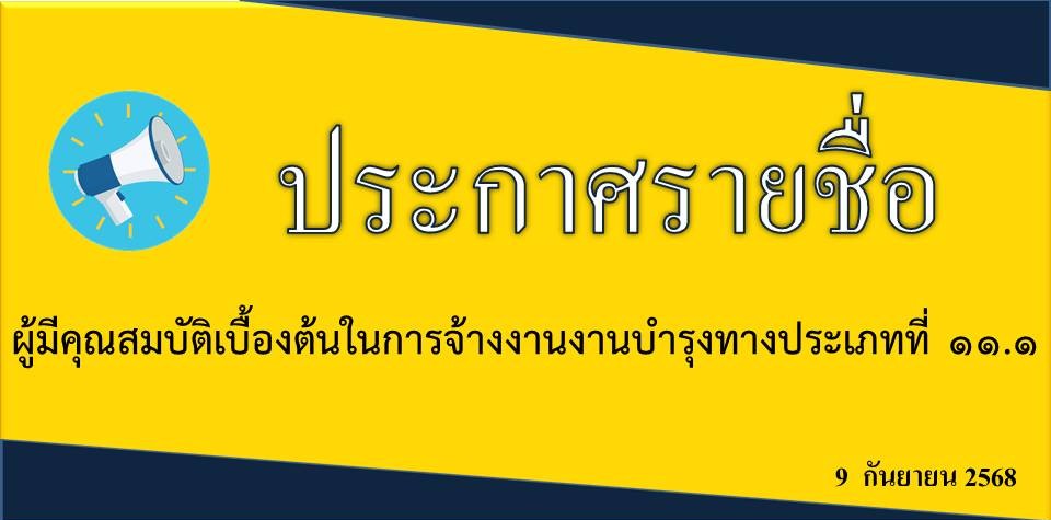 ประกาศรายชื่อผู้มีคุณสมบัติเบื้องต้นในการจ้างงานบำรุงทาง ประเภทที่ 11.1