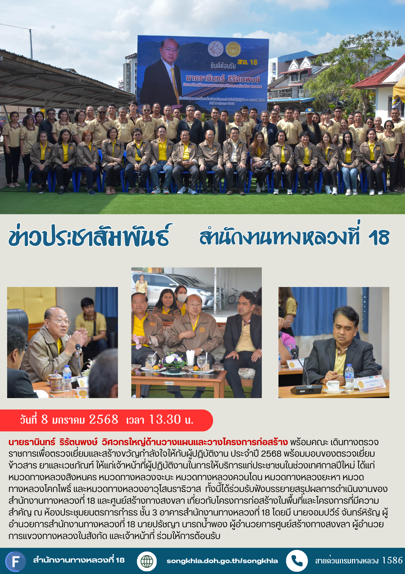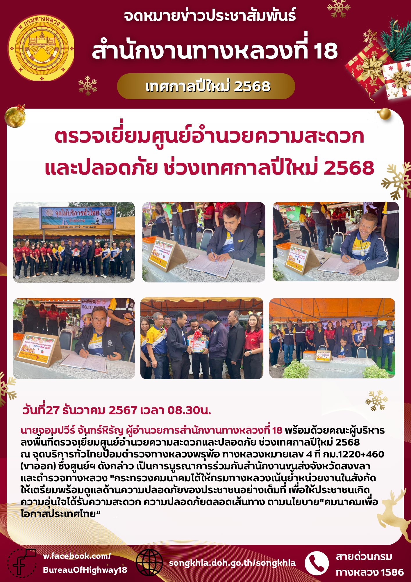 สำนักงานทางหลวงที่ 18” เตรียมพร้อมอำนวยความสะดวก-ปลอดภัยประชาชน รองรับการเดินทางช่วงเทศกาลปีใหม่ 2568 ตลอด 24 ชม