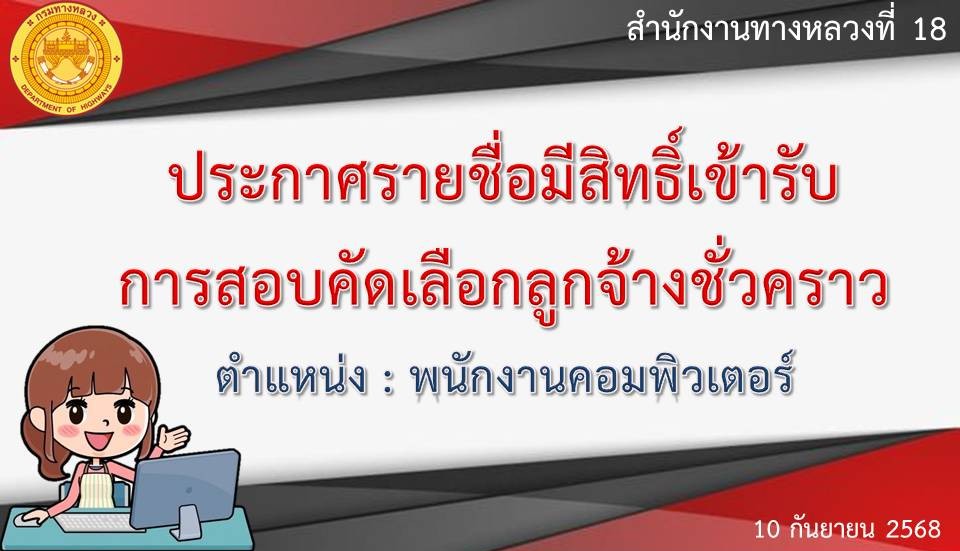 ประกาศรายชื่อมีสิทธิ์เข้ารับการสอบคัดเลือกลูกจ้างชั่วคราว ตำแหน่ง : พนักงานคอมพิวเตอร์