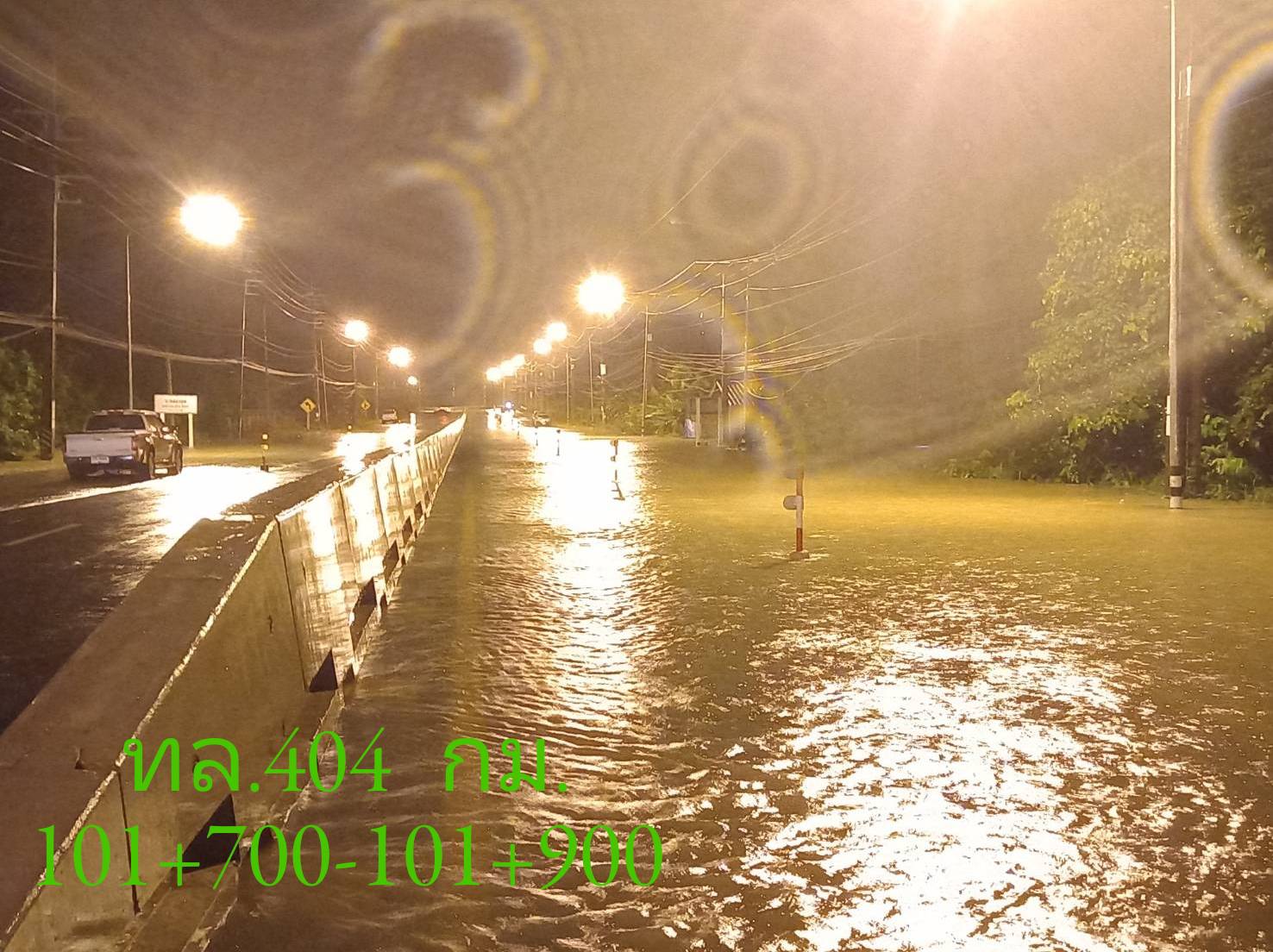รายงานน้ำท่วม ทางหลวงหมายเลข 404 ตอน ละงู - ฉลุง ช่วง กม.101+700-กม.101+900