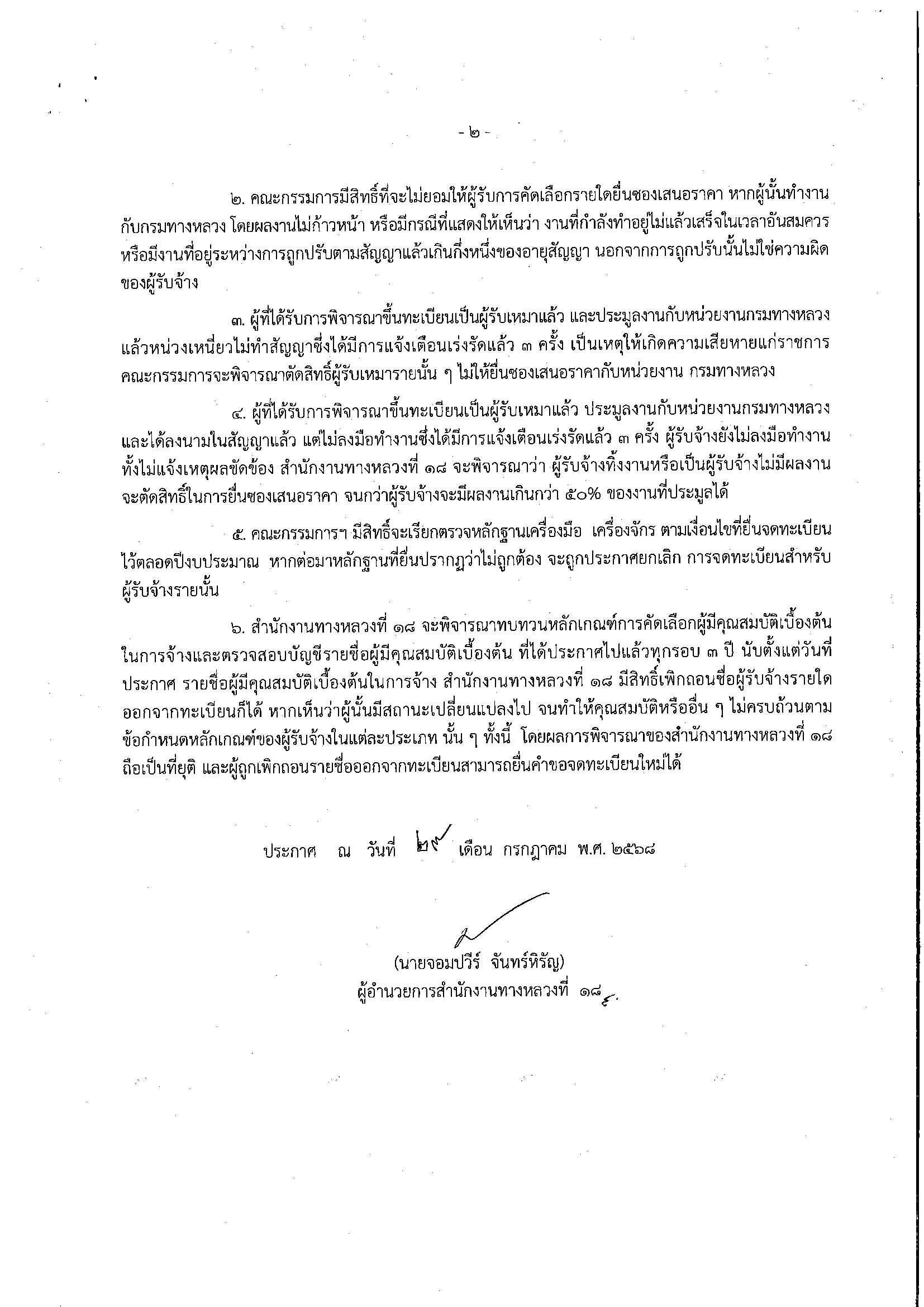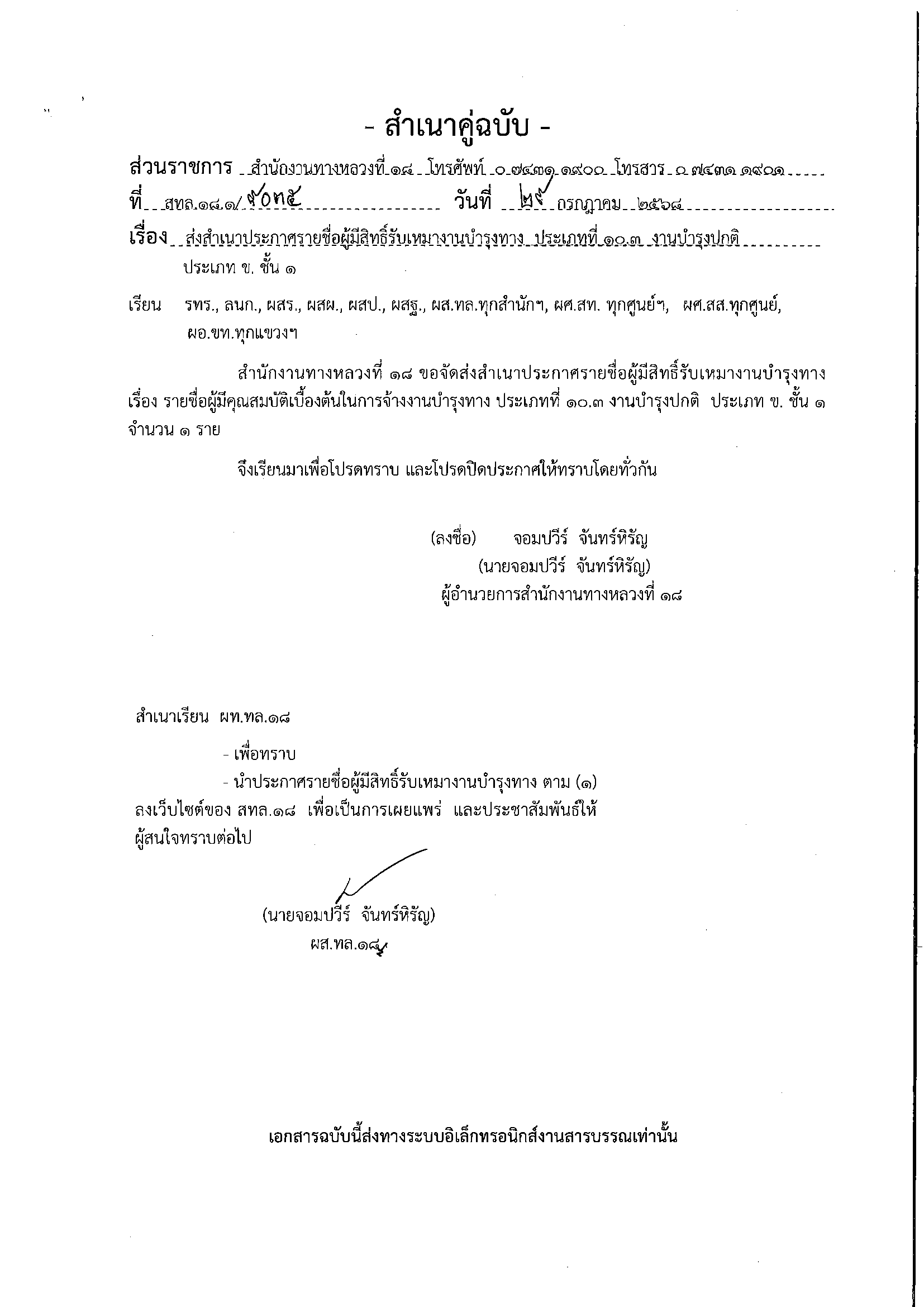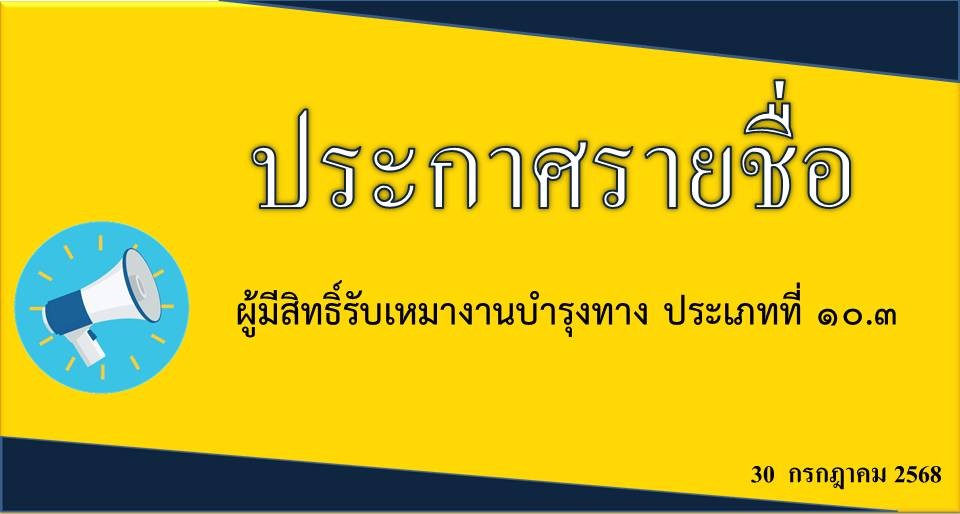 ประกาศรายชื่อผู้มีสิทธิ์รับเหมางานบำรุงทาง ประเภทที่ 10.3 งานบำรุงปกติ