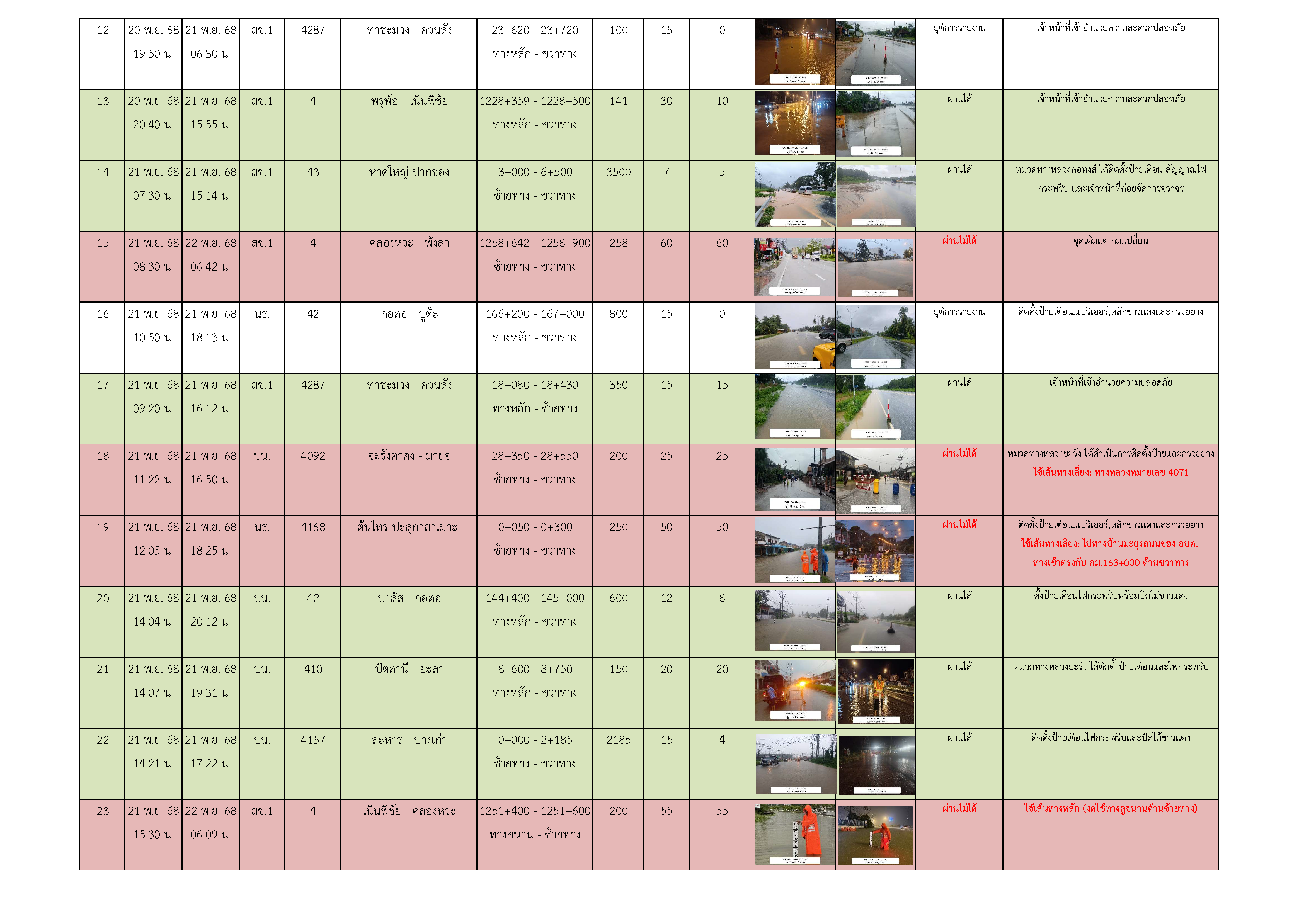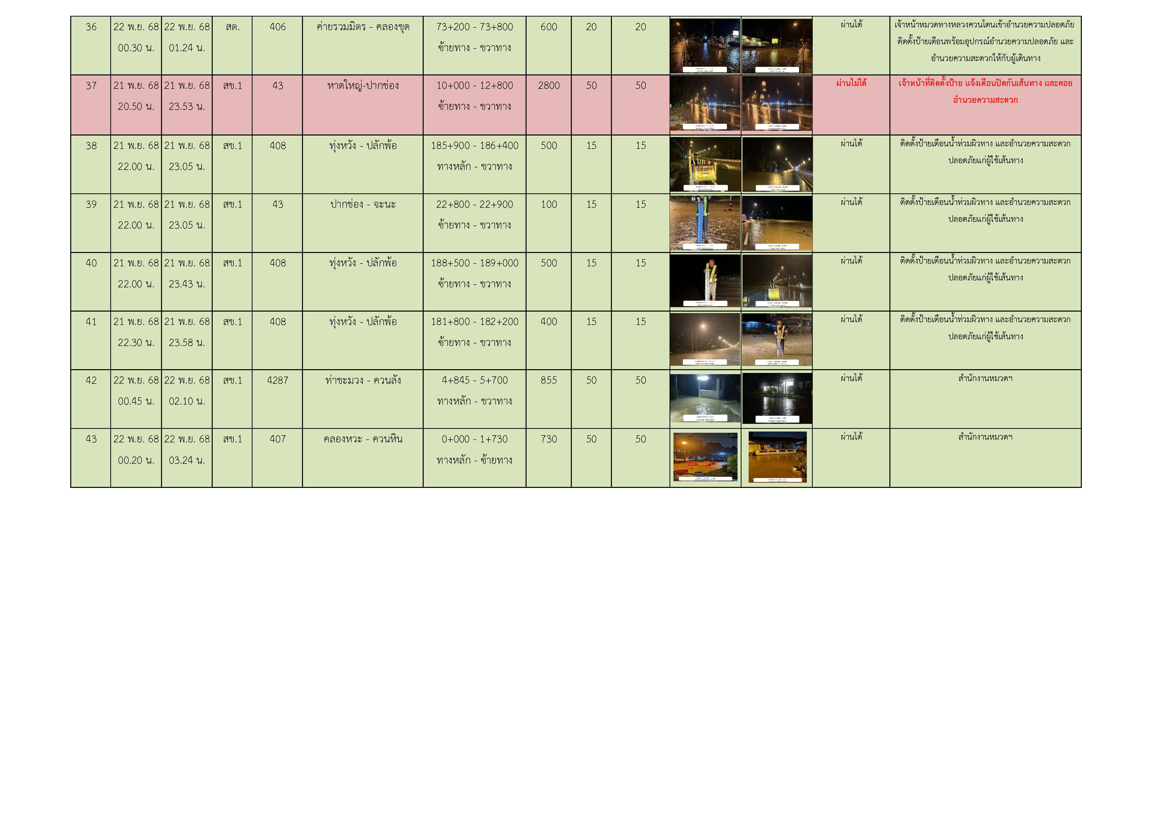 ขอรายงานน้ำท่วมในระหว่างวันที่ 20-22 พ.ย. 68 ประจำวันที่ 22 พ.ย. 68 ณ เวลา 06.00 น. ตามรายงานแนบ
