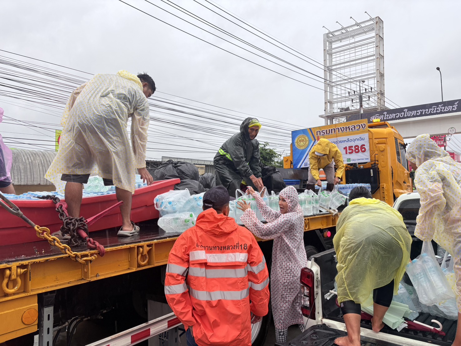 วันที่ 24 พฤศจิกายน 2568 สำนักงานทางหลวงที่ 18 นำโดยนายสยาม สุขจันทร์ รองผู้อำนวยการสำนักงานทางหลวงที่ 18 ได้นำข้าวกล่องพร้อมน้ำดื่ม จำนวน 300 ชุด และช่วยเหลือประชาชนที่ได้รับผลกระทบจากอุทกภัยในพื้นที่ บริเวณสี่แยกโรงปูน อำเภอหาดใหญ่ จังหวัดสงขลา ด้วยความห่วงใยและร่วมแรงร่วมใจของพนักงานกรมทางหลวง