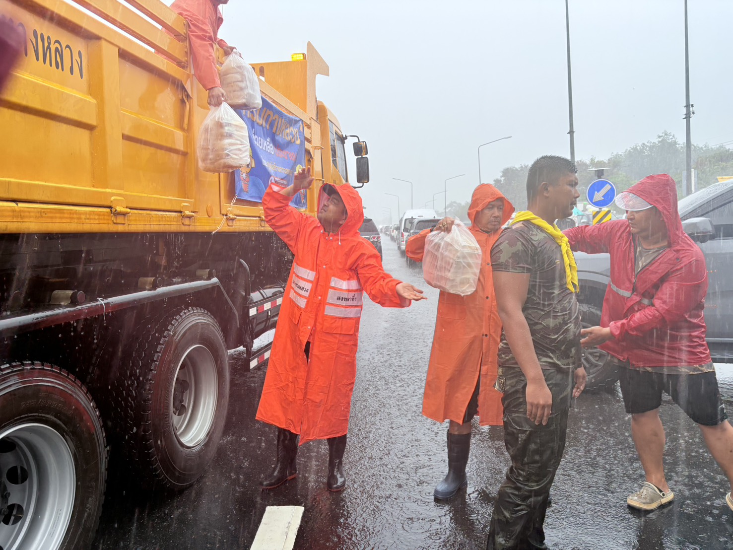 สำนักงานทางหลวงที่ 18 ได้นำข้าวกล่องพร้อมน้ำดื่ม จำนวน 200 ชุด ไปแจกให้กับประชาชนที่ได้รับผลกระทบจากอุทกภัยในพื้นที่