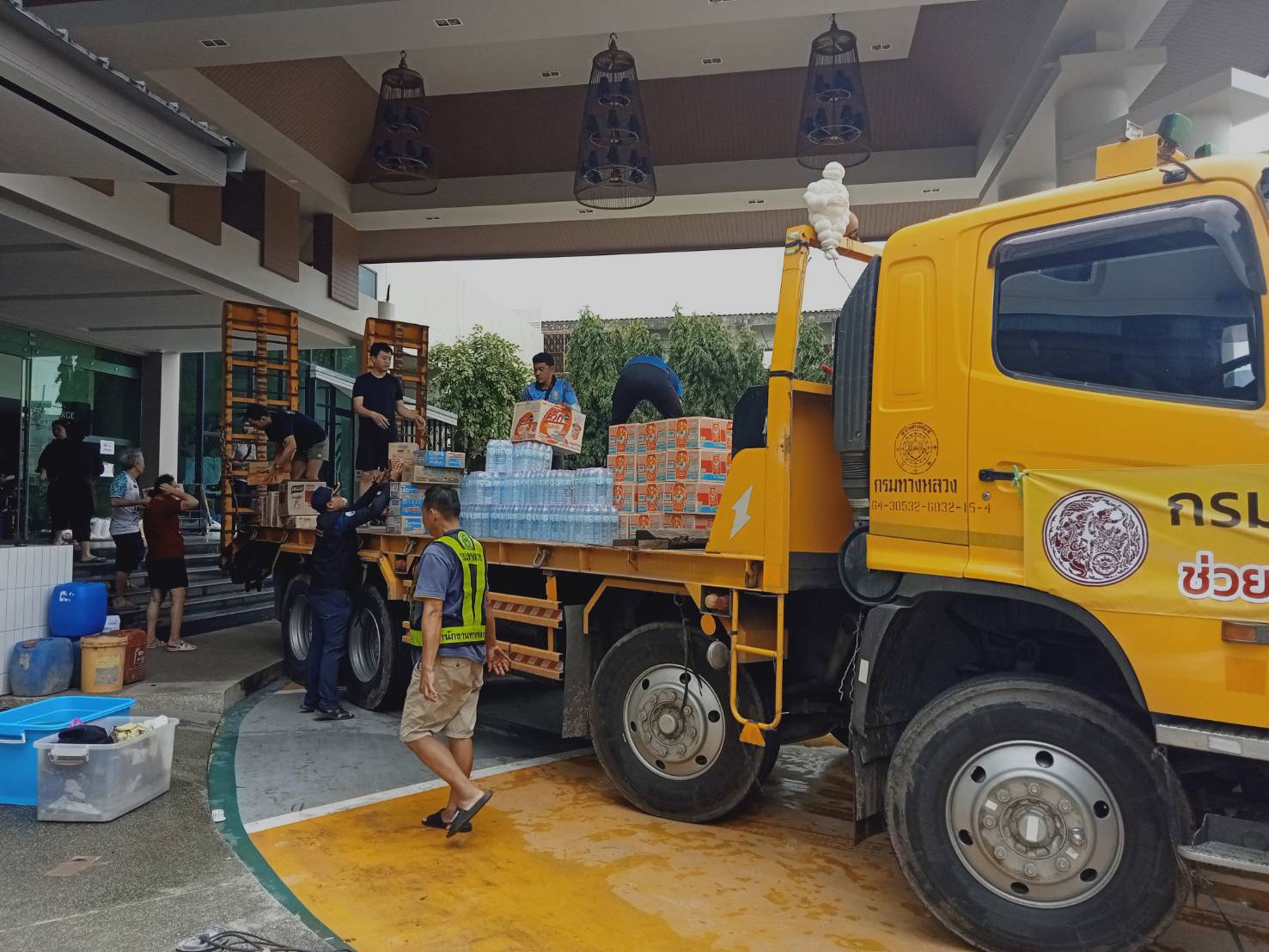 สำนักงานทางหลวงที่ 15 ได้รับภารกิจนำน้ำดื่มและอาหารแห้งจาก มทบ.42 ไปส่งที่โรงแรมบุรีศรีภู