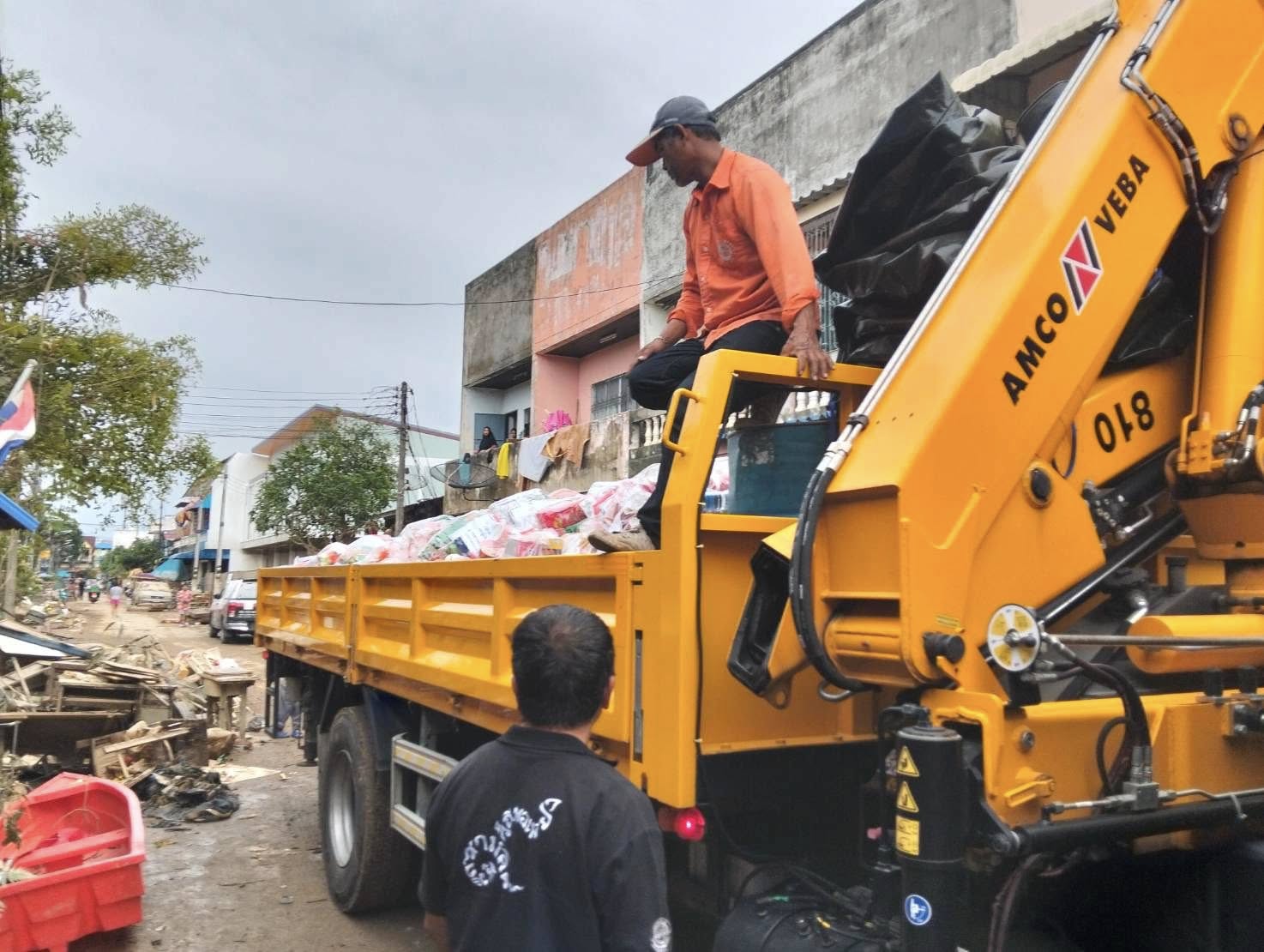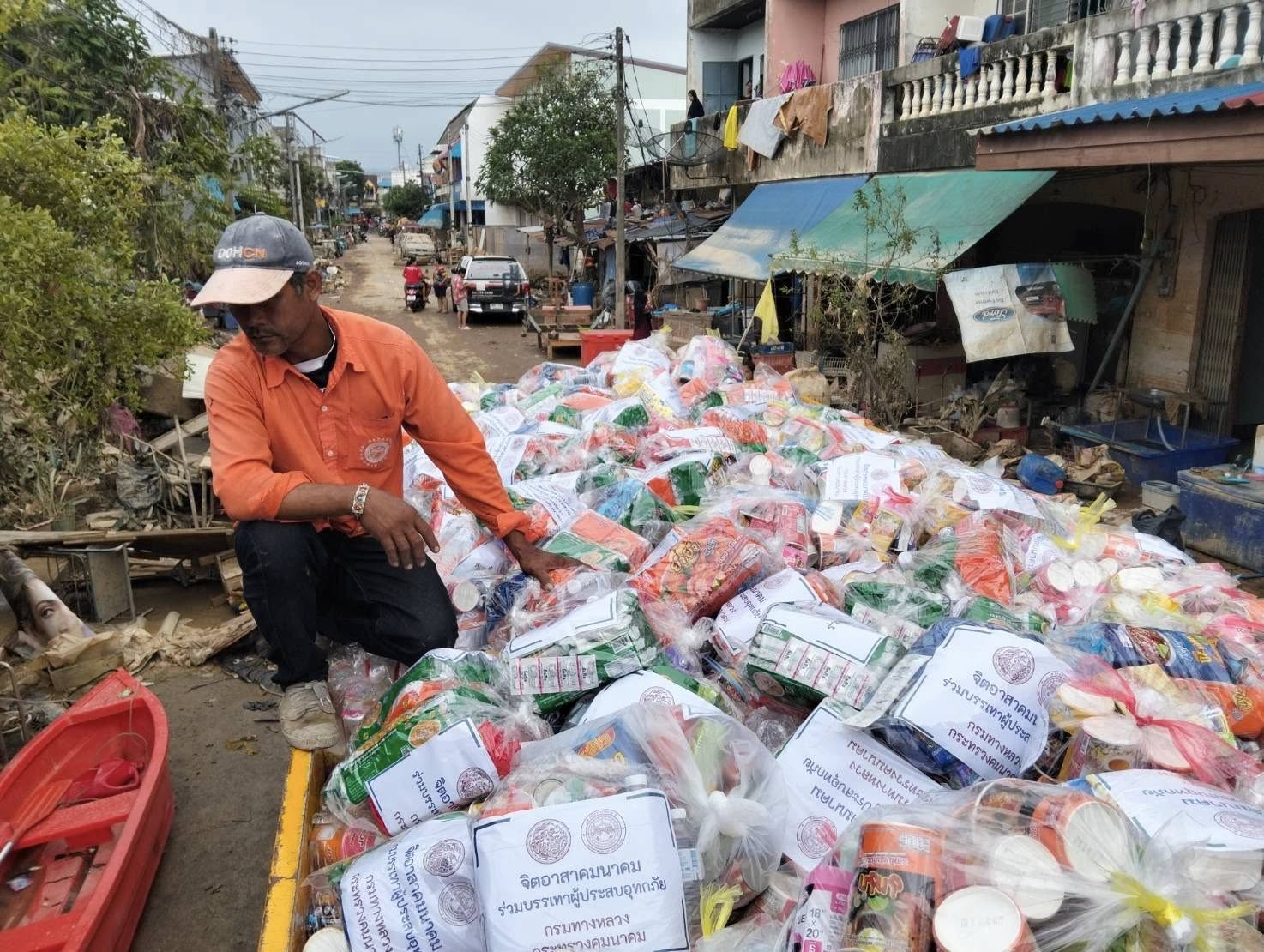 กรมทางหลวง "จิตอาสาคมนาคม“ โดยรถคาราวาน ได้ลงพื้นที่แจกจ่ายถุงยังชีพพร้อมน้ำดื่มให้กับประชาชนผู้ประสบอุทกภัยในพื้นที่น้ำท่วมในตัวเมือง อ.หาดใหญ่