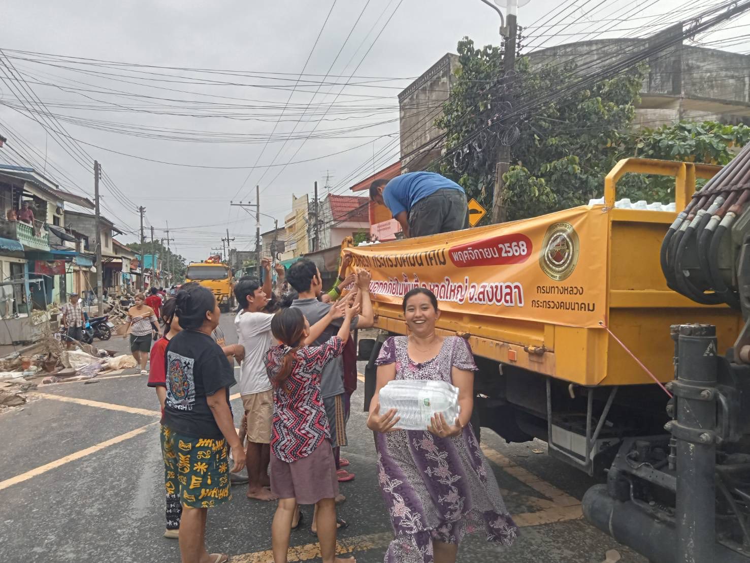 กรมทางหลวง "จิตอาสาคมนาคม“ โดยรถคาราวาน ได้ลงพื้นที่แจกจ่ายถุงยังชีพพร้อมน้ำดื่มให้กับประชาชนผู้ประสบอุทกภัยในพื้นที่น้ำท่วมในตัวเมือง อ.หาดใหญ่